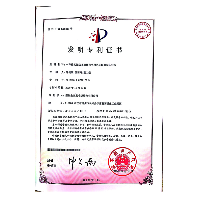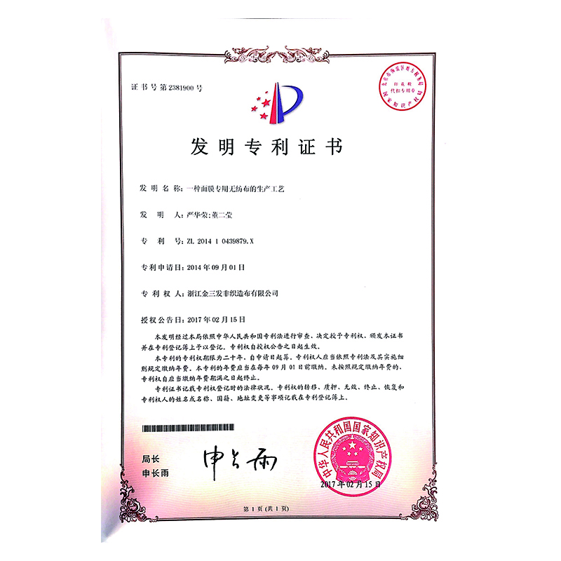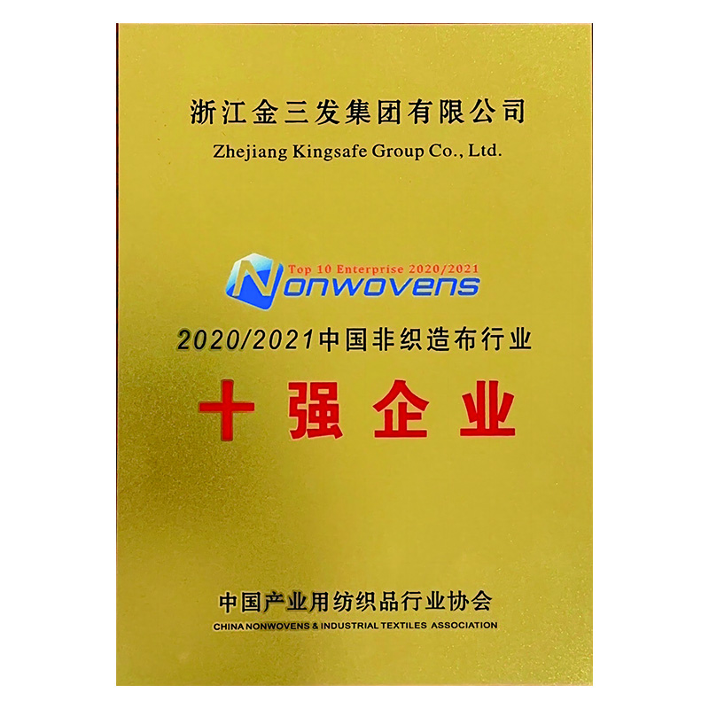 Занимает 1 место в рейтинге 10 лучших в отрасли производства нетканых материалов Китая 12 лет подряд.