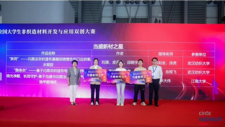 После экспертной оценки 12-й конкурс национального колледжа «Цзинсанфа · Даншэн» по разработке и применению нетканых материалов в области предпринимательства и предпринимательства для студентов был награжден 1 специальным призом, 2 первыми премиями, 3 звездами новых материалов Dangsheng (того же уровня, что и первый приз), 3 Baijiali Design Звезды (того же уровня, что и первый приз), 9 вторых призов и 44 третьих места.